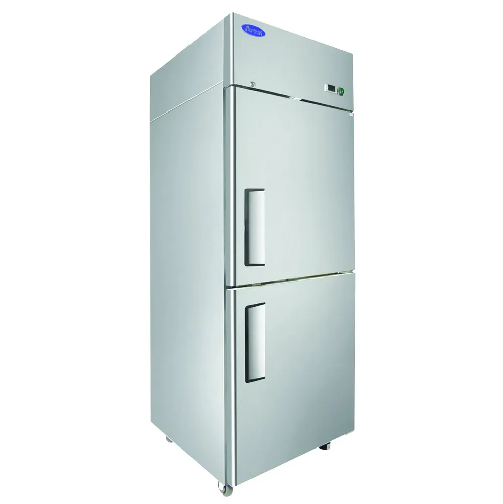 Transform your food service with the Atosa USA MBF8007GR Freezer, Reach-In. This top-mount, self-contained refrigeration unit is designed to meet the demands of a busy commercial restaurant. With a spacious 21.4 cu ft capacity, this freezer provides ample storage space for all your frozen goods. The two locking right-hand hinged solid half-doors ensure that your inventory remains secure. The digital temperature control allows you to easily adjust the temperature between -8°F to 0°F, ensuring that your food stays fresh and frozen. The three adjustable shelves provide flexibility in organizing your items, while the interior LED lighting illuminates the contents for easy visibility. The stainless steel interior and exterior not only give this freezer a sleek and professional look but also make it easy to clean and maintain. With its automatic evaporation and electric defrost features, this freezer requires minimal maintenance. The 4" casters make it easy to move and clean around the unit. Plus, with its ENERGY STAR® certification, you can save on energy costs while reducing your carbon footprint. Upgrade your restaurant's storage capabilities with the Atosa USA MBF8007GR Freezer, Reach-In.