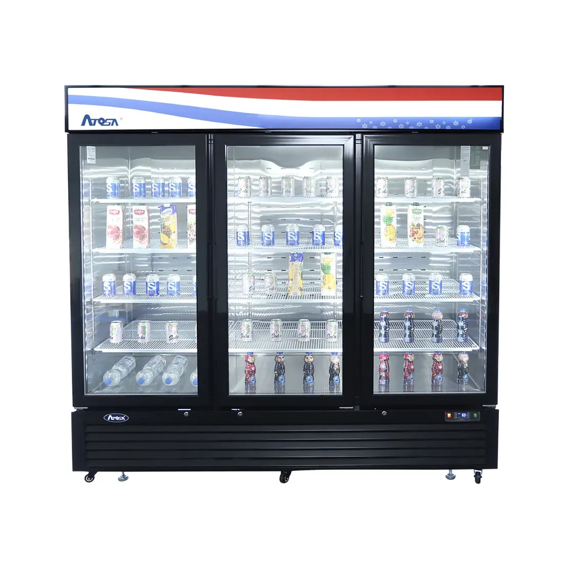 Cook with precision using the Atosa USA MCF8724GR Refrigerator Merchandiser. This three-section refrigerator is designed to meet the demands of a commercial restaurant, offering a spacious 69.5 cu. ft. capacity to store and display your food items. The three self-closing hinged glass doors not only provide easy access but also come with locks to ensure the safety and security of your products. With a temperature range of 33° to 38°F, you can keep your perishables fresh and ready for service. The LED interior lighting illuminates the contents, making it easy for your customers to see and choose their desired items. The stainless steel interior and black steel exterior not only give this merchandiser a sleek and professional look but also make it durable and easy to clean. Equipped with a Dixell electronic controller, this refrigerator allows for precise temperature control. The Atosa USA MCF8724GR Refrigerator Merchandiser is the perfect addition to any commercial restaurant, providing both functionality and style.