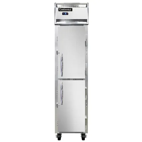 Cooking at its finest begins with the Continental Refrigerator 1FSENSAHD Freezer. This slim line reach-in freezer is designed to meet the needs of commercial restaurants, offering ample storage space and reliable performance. With its one-section design and standard depth, this freezer is perfect for busy kitchens where space is at a premium. The aluminum interior and stainless steel exterior ensure durability and easy cleaning, while the half-height solid doors provide convenient access to your frozen ingredients. The electronic control with digital display allows for precise temperature management, and the hi-low alarm alerts you if the temperature deviates from the set range. With a 1/3 HP compressor and electric condensate evaporator, this freezer is energy-efficient and environmentally friendly. Made in the USA and certified by cETLus and NSF, the Continental Refrigerator 1FSENSAHD Freezer is a reliable and high-quality addition to any commercial kitchen.