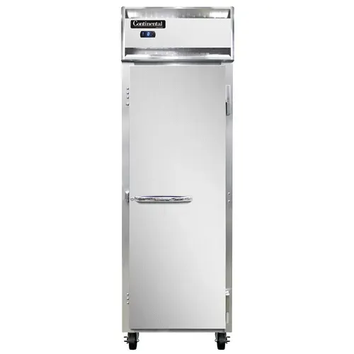 Equip your kitchen for success with the Continental Refrigerator, 1FSN Freezer, Reach-In. This self-contained refrigeration unit is designed to meet the demands of a busy commercial restaurant. With its stainless steel front and aluminum interior and ends, this freezer is not only durable but also easy to clean, ensuring a hygienic environment for your food storage. The shallow depth design allows for efficient use of space, while the full-height solid door provides easy access to your frozen goods. The electronic control with a digital display allows for precise temperature management, while the hi-low alarm ensures that you are alerted if the temperature deviates from the set range. With a 1/3 HP compressor, this freezer provides reliable cooling power. Made in the USA and certified by cETLus and NSF, you can trust the quality and safety of this Continental Refrigerator. Upgrade your kitchen with the Continental Refrigerator, 1FSN Freezer, Reach-In and experience the convenience and efficiency it brings to your restaurant operations.