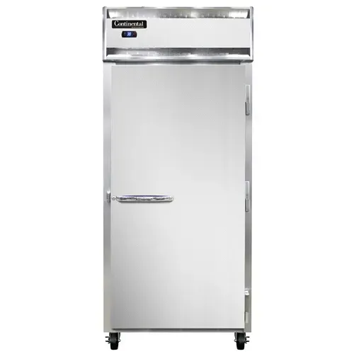 Cook with precision using the Continental Refrigerator 1RXNSA Reach-In Refrigerator. This extra-wide, one-section refrigerator is designed to meet the demands of a commercial restaurant kitchen. With its stainless steel exterior and aluminum interior, it not only looks sleek but also ensures durability and easy cleaning. The full-height solid door provides easy access to the contents while keeping them securely stored. The electronic control with a digital display allows for precise temperature management, ensuring that your ingredients stay fresh and safe. The hi-low alarm alerts you if the temperature goes outside the desired range, preventing any spoilage. The electric condensate evaporator eliminates the need for manual defrosting, saving you time and effort. With a 1/4 HP compressor, this refrigerator provides reliable cooling power. Made in the USA and certified by cETLus and NSF, you can trust the quality and safety of this Continental Refrigerator. Upgrade your kitchen with the Continental Refrigerator 1RXNSA Reach-In Refrigerator and experience the convenience and efficiency it brings to your restaurant operations.