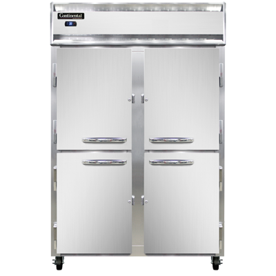 Culinary artistry redefined with the Continental Refrigerator, 2RNSSHD, Refrigerator, Reach-In. This two-section, self-contained refrigeration unit is designed to meet the demands of a commercial restaurant. With a stainless steel exterior and interior, it not only looks sleek but also ensures durability and easy cleaning. The standard depth and half-height solid doors provide convenient access to the stored items, while the electronic control with a digital display allows for precise temperature management. The hi-low alarm alerts the staff if the temperature goes outside the desired range, ensuring food safety. The electric condensate evaporator eliminates the need for manual defrosting, saving time and effort. Powered by a 1/3 HP motor, this refrigerator is energy-efficient and reliable. With cETLus and NSF certifications, you can trust its quality and compliance with industry standards. Elevate your culinary experience with the Continental Refrigerator, 2RNSSHD, Refrigerator, Reach-In. Made in the USA, this unit is a testament to exceptional craftsmanship and functionality.