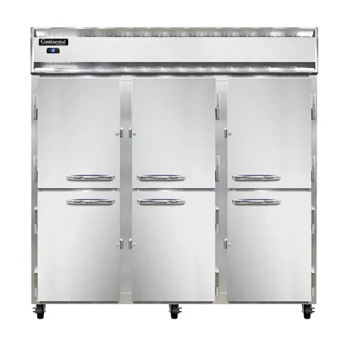 Master your restaurant's kitchen with the Continental Refrigerator, 3RNSAHD, Reach-In Refrigerator. This top-of-the-line refrigerator is designed to meet the demanding needs of commercial restaurants. With its stainless steel exterior and aluminum interior, it not only looks sleek but is also durable and easy to clean. The three-section design provides ample storage space for all your ingredients and supplies. The half-height solid doors allow for easy access while minimizing temperature loss. The electronic control with a digital display ensures precise temperature management, while the hi-low alarm alerts you if the temperature deviates from the set range. The electric condensate evaporator eliminates the need for manual defrosting, saving you time and effort. Powered by a 1/2 HP compressor, this refrigerator delivers reliable performance. NSF and cETLus certified, this refrigerator is guaranteed to meet the highest standards of quality and safety. Upgrade your kitchen with the Continental Refrigerator, 3RNSAHD, Reach-In Refrigerator and experience the difference it makes in your restaurant's efficiency and productivity.