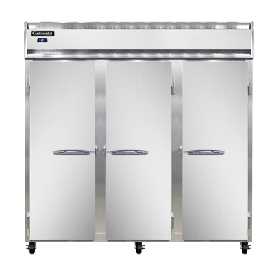 Culinary excellence in every dish starts with the Continental Refrigerator, 3RSNSA. This reach-in refrigerator is designed to meet the demands of a commercial restaurant, ensuring that your ingredients stay fresh and your kitchen runs smoothly. With its shallow depth and full-height solid doors, this refrigerator maximizes storage space while maintaining a sleek and professional appearance. The stainless steel exterior and aluminum interior not only provide durability but also make cleaning a breeze. The electronic control with a digital display allows for precise temperature management, while the hi-low alarm ensures that you are alerted if the temperature deviates from the desired range. Powered by a 1/2 HP compressor, this refrigerator is both efficient and reliable. Made in the USA and certified by cETLus and NSF, you can trust the Continental Refrigerator, 3RSNSA to deliver exceptional performance and quality for your restaurant.