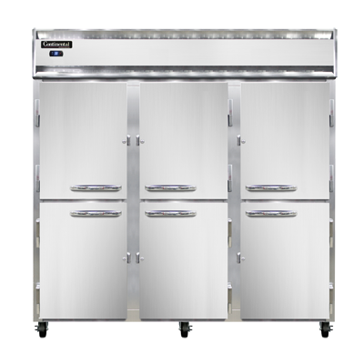 Maximize your food service potential with the Continental Refrigerator, 3RSNSAHD, Refrigerator, Reach-In. This top-of-the-line refrigerator is designed to meet the demanding needs of commercial restaurants. With its shallow depth and half-height solid doors, it provides easy access to your ingredients while saving valuable space in the kitchen. The stainless steel exterior and aluminum interior ensure durability and easy cleaning, while the self-contained refrigeration system keeps your food at the perfect temperature. The electronic control with a digital display allows for precise temperature adjustments, and the hi-low alarm alerts you if the temperature deviates from the set range. With a powerful 1/2 HP motor, this refrigerator is built to handle the demands of a busy kitchen. Plus, it is cETLus and NSF certified, guaranteeing its quality and safety. Trust Continental Refrigerator to deliver reliable and efficient refrigeration solutions for your restaurant.