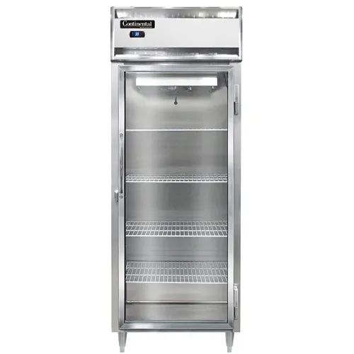 Elevate your dining experience with the Continental Refrigerator D1RESNSSGD Reach-In Refrigerator. This designer line wide refrigerator is perfect for commercial restaurant use, offering a sleek stainless steel exterior and interior that not only looks professional but is also easy to clean. The wide full-height glass door allows for easy visibility of your stored items, making it convenient for quick access during busy service hours. With self-contained refrigeration and electronic control with a digital display, you can easily monitor and adjust the temperature to ensure your ingredients stay fresh. The hi-low alarm alerts you if the temperature goes outside the desired range, providing peace of mind. The shallow depth cabinet and 6" stainless steel legs make this refrigerator compact and easy to fit into any kitchen layout. With its 1/3 HP motor, cETLus and NSF certifications, this Continental Refrigerator is a reliable and efficient choice for any commercial restaurant.