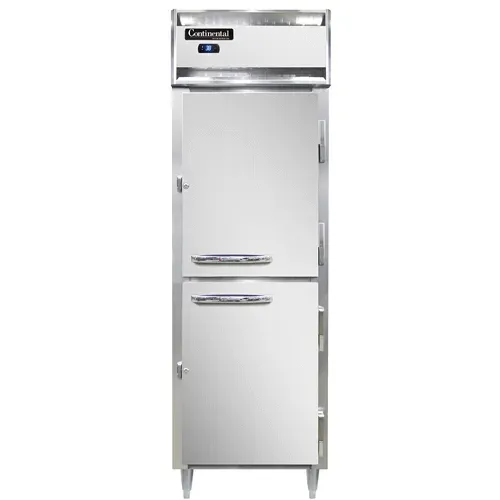 Elevate your cuisine with the Continental Refrigerator D1RSNSAHD Reach-In Refrigerator. This designer line refrigerator is perfect for commercial restaurant use, offering a sleek stainless steel exterior and an aluminum interior. The shallow depth cabinet and half-height solid doors make it easy to access and organize your ingredients. With self-contained refrigeration and electronic control with a digital display, you can easily monitor and adjust the temperature to ensure your food stays fresh. The hi-low alarm alerts you if the temperature goes outside the desired range, giving you peace of mind. The 6" stainless steel legs provide stability and make it easy to clean underneath. Made in the USA and certified by cETLus and NSF, this refrigerator is built to last and meets the highest standards of quality and safety. Upgrade your kitchen with the Continental Refrigerator D1RSNSAHD Reach-In Refrigerator and experience the difference in performance and reliability.